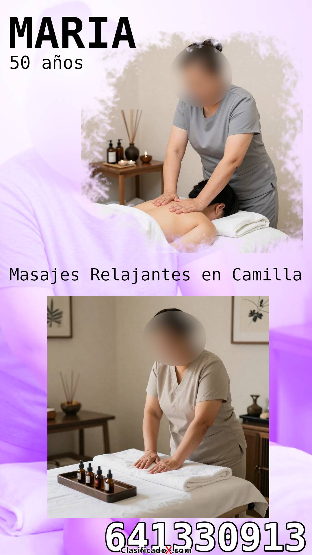Hola soy maria de cincuenta años .me dedico al masaje relajante en camilla. Y mucho más. Soy simpática coqueta extrovertida y muy alegre.si te animas y quieres pasar momentos divertidos llamame estoy entre azpeitia y zarautz. 641330913