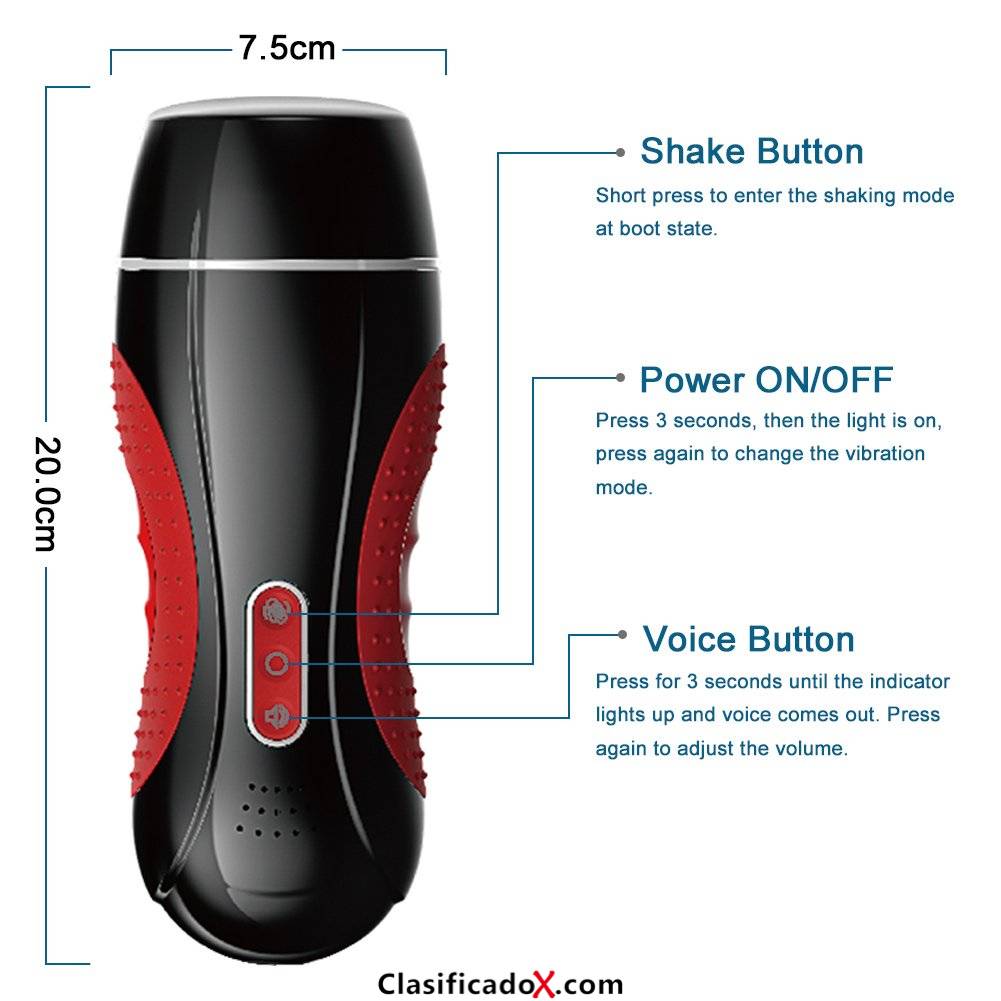 💘Qué relacionate con ella💘Si enciendes la función de voz, podrías relacionarte con el marsturbador real. Sale el sonido de Orgasmo con volumen depende de la frecuencia de sagudión. Experiencias muy especial.💘Es una Vagina estrecho💘En el vibrador para hombre tiene la barte mueble. Presiona está parte cuando usándolo, le dará una vagina estrecho de sentimiento real.💘10 vibraciónes excelente💘La masturbación de ventosa tiene 10 vibraciones diferentes. Tiene una que te gusta.💘Silicona de ABS+ médica💘La parte de vagina de mujer está fabricada con silicona ABS+ médica que es un material muy seguro, sin orol, fácil de limpiar.💘Un Envío oculto y Seguro💘Que no tengan preocupación de que alguien sabría lo que es dentro del paquete. Es de embalaje totalmente blanco y la etiqueta no tiene ninguna información.
