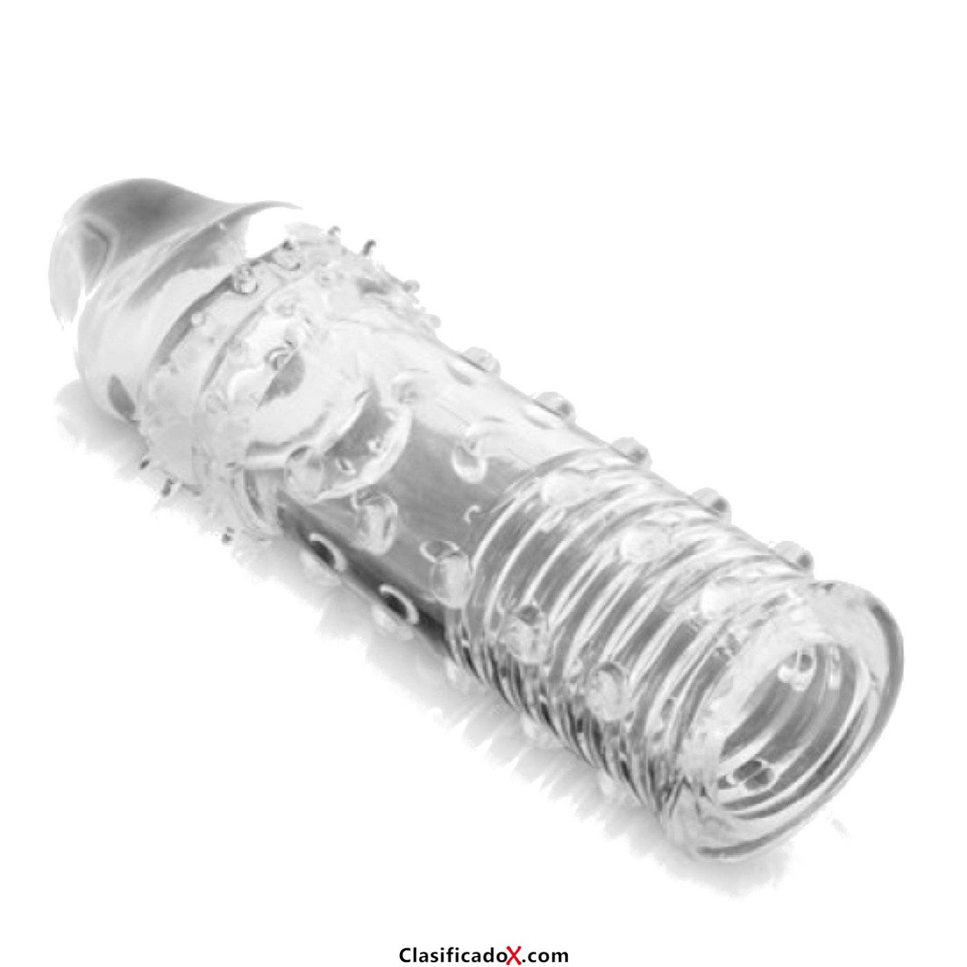 Flexible, Suave y DeslizanteSe Adapta a cualquier tamaño de Pene, Aumentando su extencion en 5 - 6 cm y 2 cm de grosorPequeñas y suaves protuberancias en forma de anillos y perlas garantizan una perfecta estimulacion internaPuede usarse tanto Anal como VaginalPermite usarse en multiples ocasiones, Para una perfecta conservacion, limpiar con agua y jabon neutro