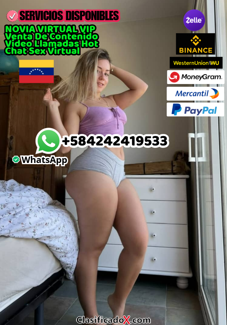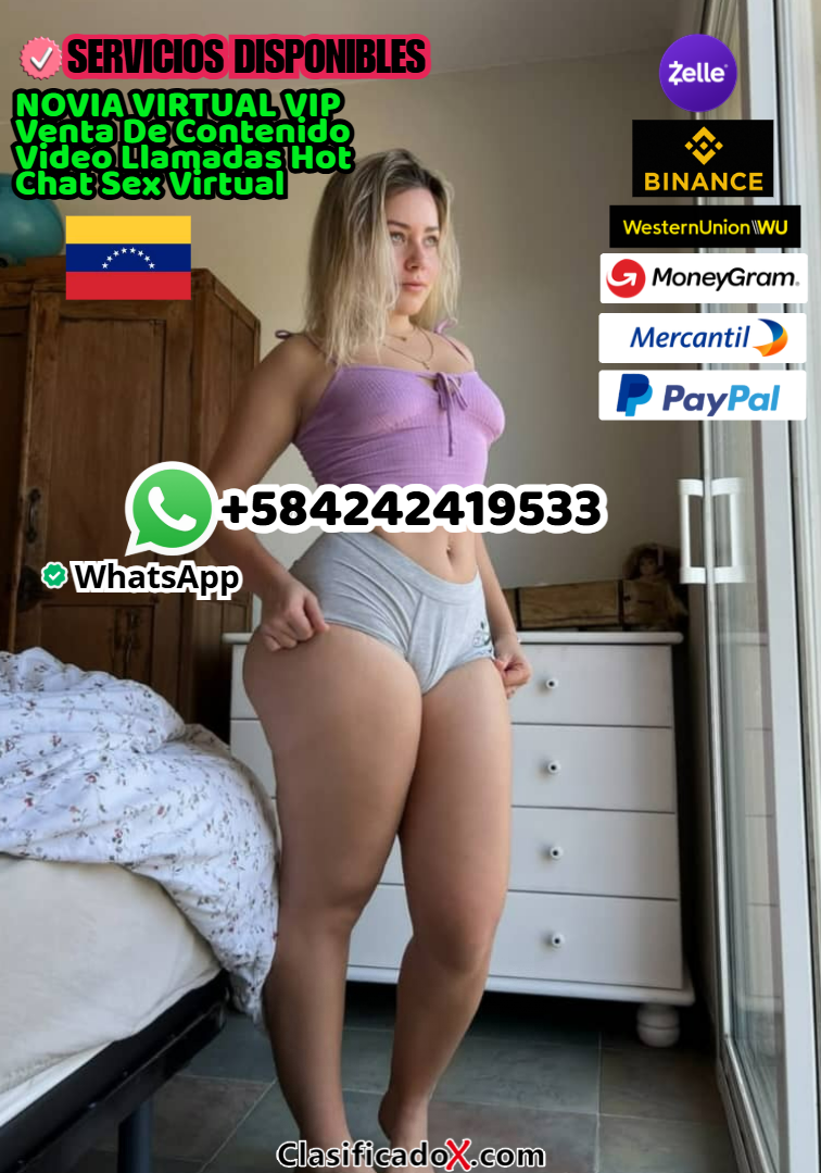 Buscas hermosa novia virtual venezolana? Eres hombre maduro soltero y deseas salir de la monotonía? Te sientes solo y deseas ser atendido por una chica joven, hermosa, seria y atenta al igual que dice, tierna y cariñosa? Hola.!! soy DANIELA, saludos desde venezuela, chica soltera sin hijos y sin novio DISPONIBLE PARA SER TU NOVIA JUGUETONA ONLINE, ofrezco platicas, video llamadas, chat y venta de contenido para adultos para aquellos hombres solteros, casados y maduros que desean reavivar emociones sentimentales o calientes, POR LA MINIMA CUOTA DE 100 DOLARES VIA ZELLE podras conocerme sin limitaciones y acceder a mi paquete virtual de fotos y videos y video llamadas para cualquier tipo de platicas o show eroticos en vivo de manera online sin limitaciones de exigencias.