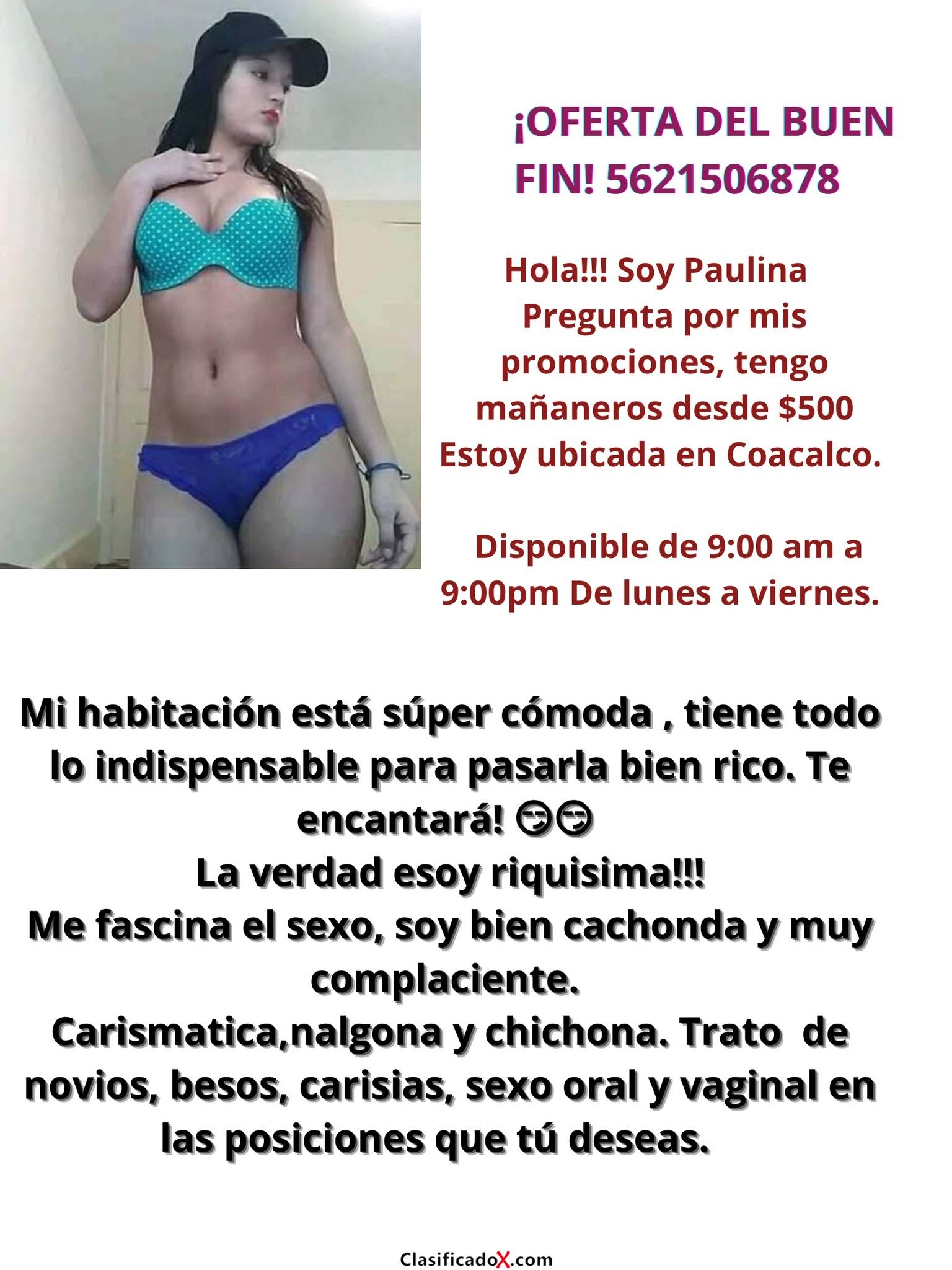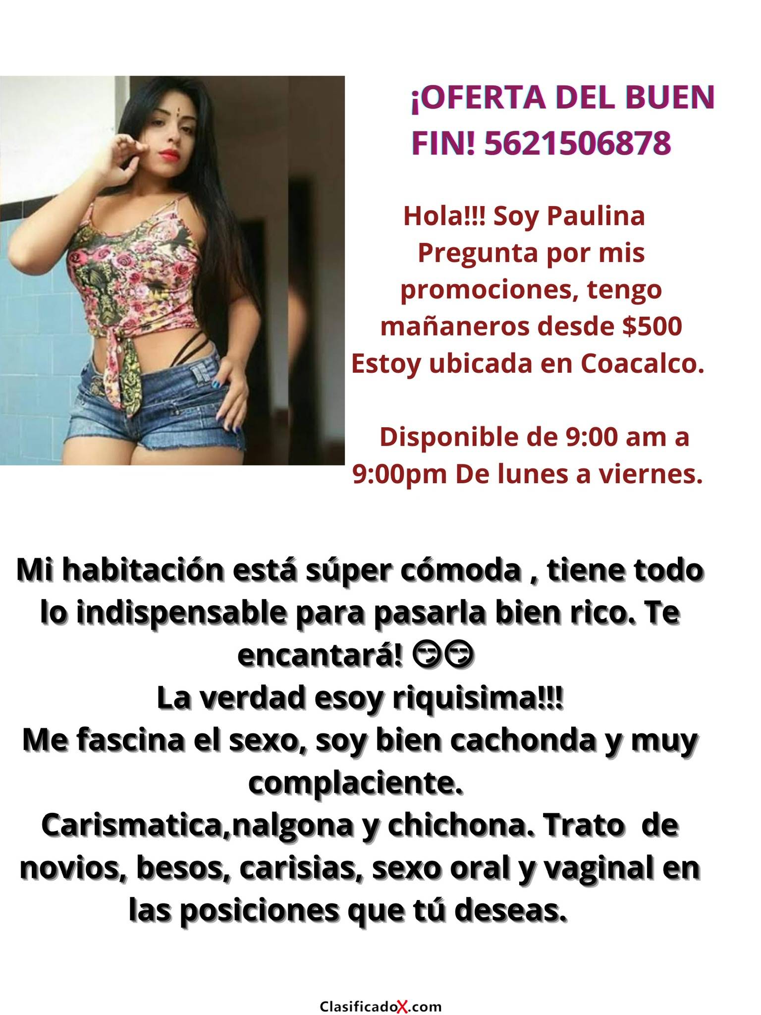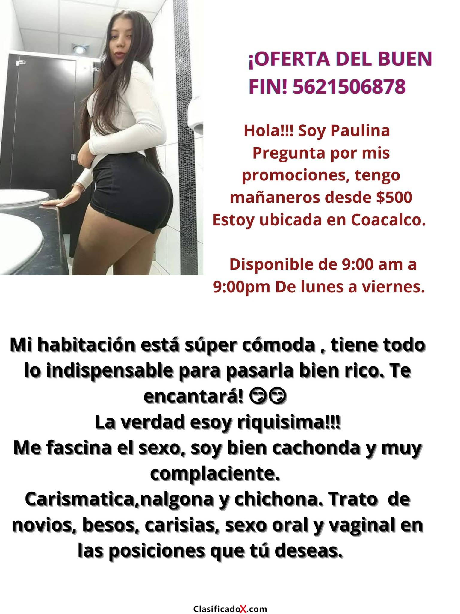 Contamos con excelentes servicios, somos complacientes, carismáticas, estamos riquísimas.