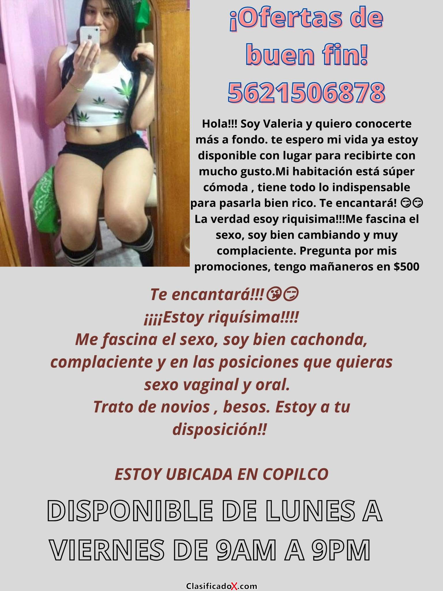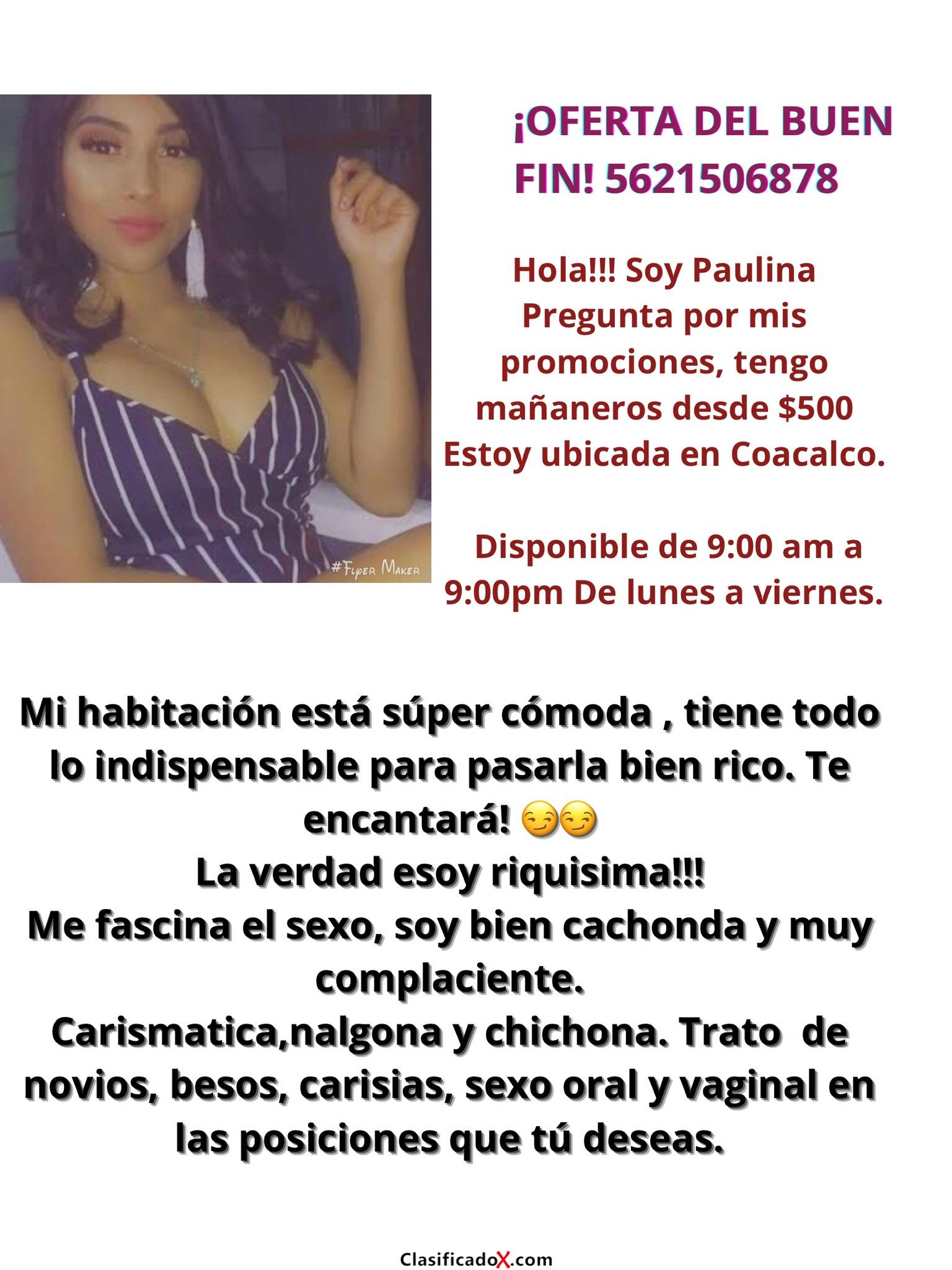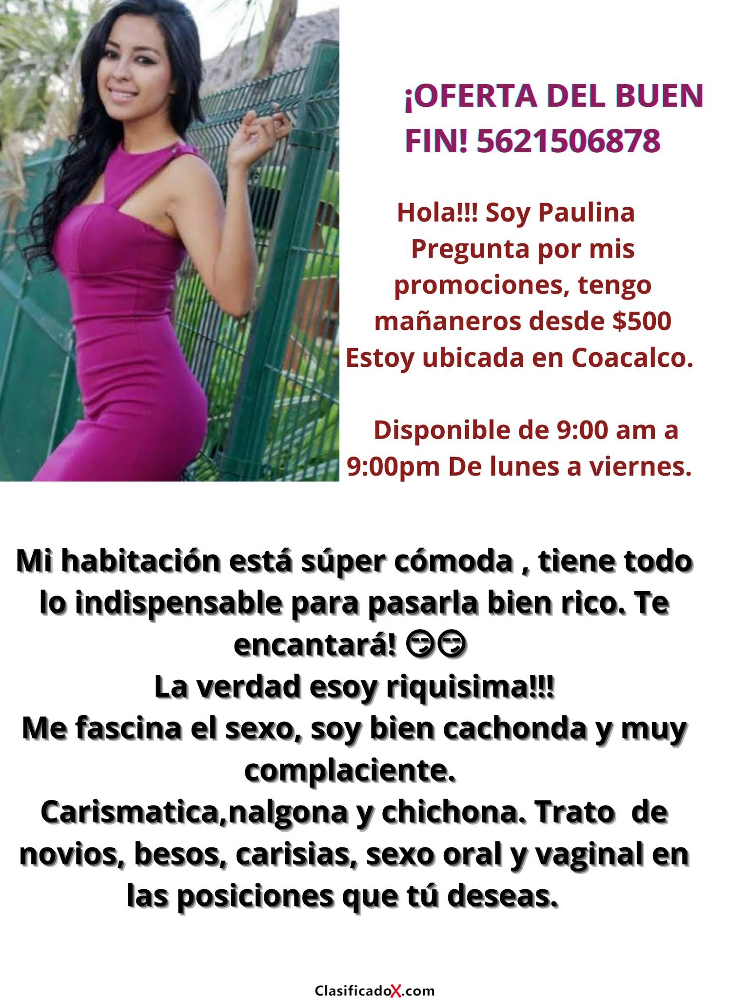 Contamos con excelentes servicios, somos complacientes, carismáticas, estamos riquísimas.